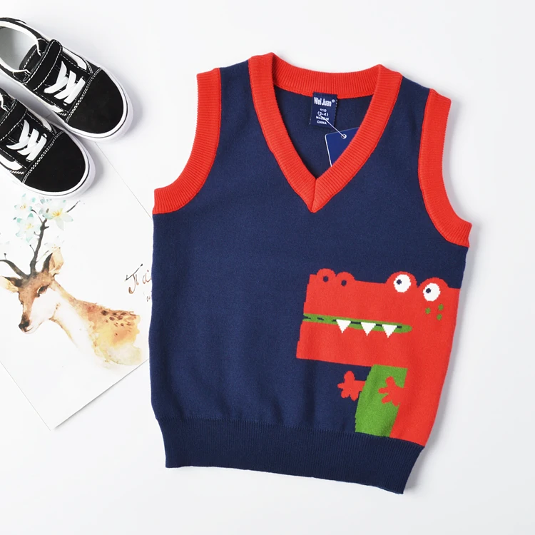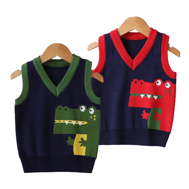 2-10y Baby boys clothes vest knitted waistcoats v-neck dinosaur cartoon pullovers 2020 spring child