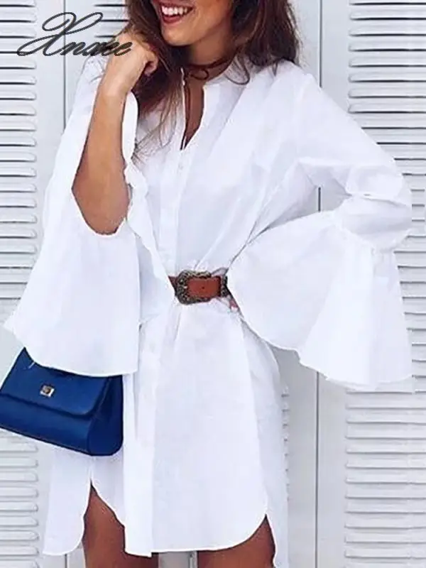 Women Casual Shirt Ladies White V Neck Long Sleeve Loose Party Tops Clothes Women Clothing Summer B