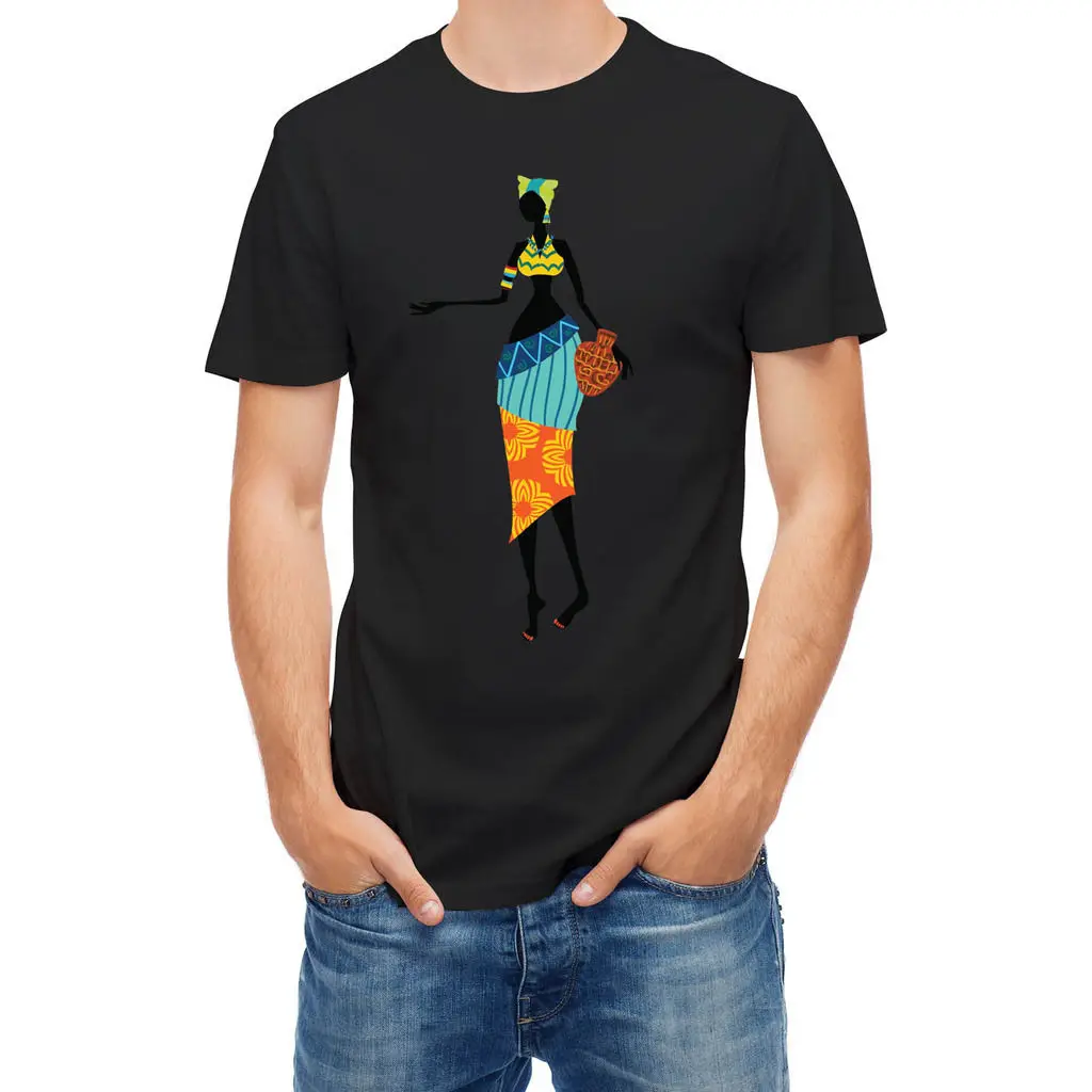 T Shirt African Woman Decorated with Vessel T-Shirts Man Clothing Free Shipping Top Tee Mens Hipste