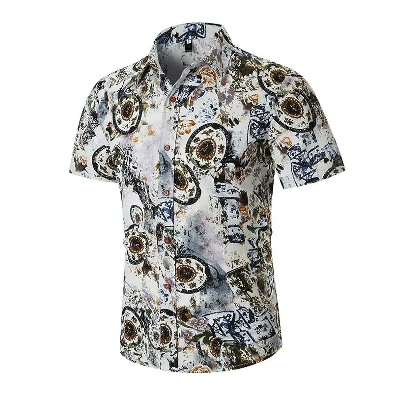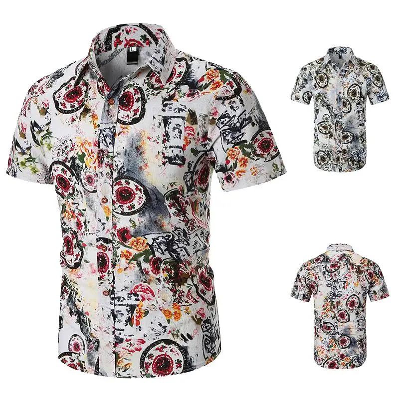 Casual Shirt Men's Clothing Camisa masculina Flower Blouse Men Floral Shirt Dress Fashion Short Sle